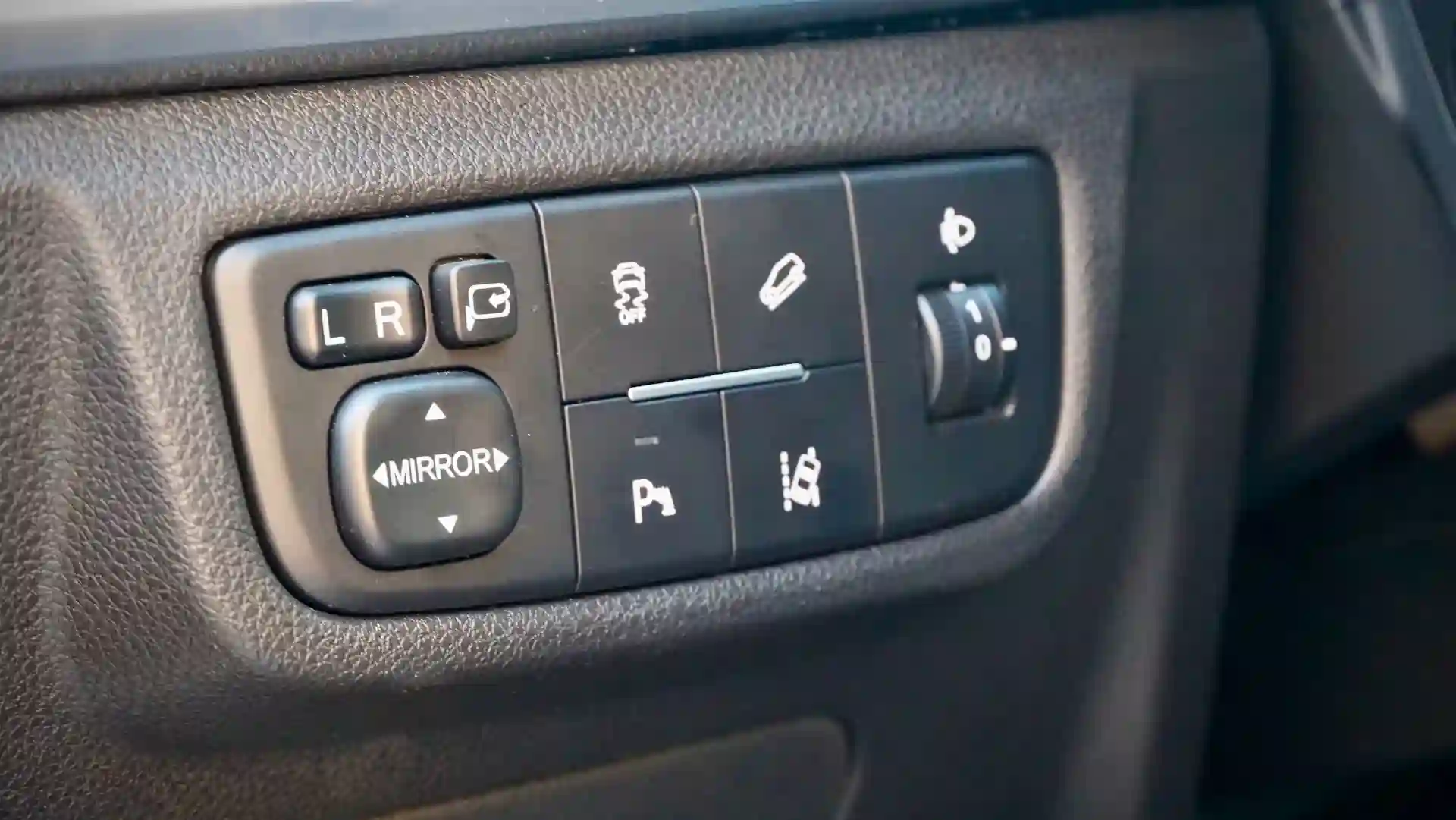 И тут, внезапно, довольно архаичный блок управления зеркалами. Кажется, это в стиле некоторых японских брендов решение.