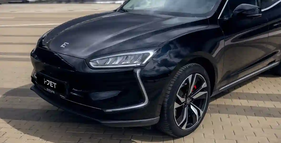 Из-за приземистого силуэта с покатой крышей EVOLUTE i‑JET не кажется крупным, хотя длина у него немаленькая — 4710 мм. При этом уже в стандартном оснащении (i‑JET продается в единственной комплектации) — 20-дюймовые колеса. А отличия от Seres Aito М5 сводятся к иному оформлению передней и задней светотехники и отсутствию решетки радиатора. Это неспроста!